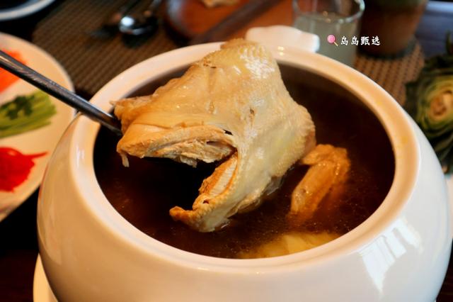 炖汤,对于泰国人来说,是维持家庭和睦、增进夫妻感情的润滑剂。榴莲,则是泰国最热门的的水果。《辞海》和《本草纲目》中记载过,榴莲其“可供药用,味甘,无毒,主治暴痢和心腹冷气。俗话还说:”一只榴莲三只鸡”。说明其营养价值特别的高,所以在泰国便有榴莲炖鸡这道菜。如此特色菜品我们当然也要尝一尝咯。服务员告诉我们,榴莲是泰国空运过来的,里面的鸡则是广东清远的清远鸡,别以为汤是炖出来的,泰餐厅的榴莲炖鸡可是蒸出来,足足蒸了四个小时,这样才使得里面的营养物质不流失,果然,喝上一口,怎一个“鲜"字了得。