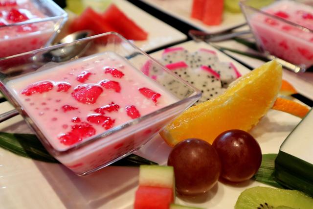 泰国的甜品也是超级多的,像是芒果糯米饭、冰淇淋椰汁香蕉、榴莲西米露、火龙果百香布丁等等。但最后的甜品岛岛选了这碗红宝石。所谓的红宝石其实就是颜色如红宝石般的马蹄粒。马蹄是提前用红糖水腌制过的,所以才会呈现出红宝石般的色彩,表面还包裹了一层木薯粉,再搭配椰浆和西米露,入口水润香甜还很Q哦。由于红宝石制作工艺比较复杂,所以并不是随便哪个泰餐厅就可以吃到的哦。