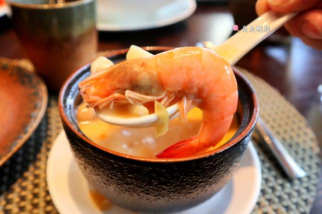 冬阴功汤是泰国的国汤,这道汤菜在泰国相当的普遍,可以说大小餐厅随处都可以吃到,但正因为很普遍,就像中国的蛋炒饭一样,特别考验厨师的功力。”冬阴“是酸辣的意思,而”功“则代表虾,说白了就是酸辣虾汤。除了食材的新鲜外,对于香料的搭配,用料的多少都很是讲究,如果掌握不好,总觉得冬阴功汤有股洗衣粉的味道。而泰餐厅的冬阴功汤,喝一口你就会爱上。因为炖煮的时间比较长,汤特别的醇厚,且汤里加入了柠檬叶、香茅、鱼露、罗勒叶等香料,使得汤的口味可以说是五味俱全、酸酸辣辣香香甜甜,而且里面还搭配了菌菇,汤更鲜美了。服务员说为了增加冬阴功汤的口感,里面还加了牛奶,难怪喝起来那么丝滑。