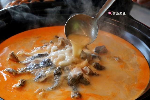 冬阴过桥石斑鱼片是服务员极力推荐的,主要是看我们人多。石斑鱼是提前片好直接摆放在锅里的,下面还铺了一层金针菇用来提鲜呢。这道菜最大的特色就是它的汤底,提前熬制好的冬阴功汤现场倒入锅里,开小火慢慢煮沸,你会发现锅里的石斑鱼片会满满卷曲,有点”富贵花开“的意思。煮开后先不要着急吃鱼,喝上一口带着鱼味的冬阴功汤,你会发现跟前面单点的冬阴功汤味道不太一样,汤底虽然也是酸酸辣辣,却没有那么浓厚,反而多了丝丝的回甜。那是因为厨师在汤里加了椰汁呢。