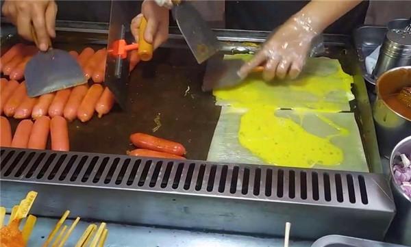 第二个原因,是口味太适合东北人了。加了糖加了醋的酸甜口味,正好戳中东北人的心,别说是东北的食客了,就是小摊贩,平时也忍不住想要摊两份烤冷面自己吃。所以烤冷面在东北,基本不愁食客。