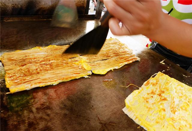 这样一来,在铁板上烤面片的时候,刷酱料、加鸡蛋、撒葱花、切面片等步骤,就不容易出现问题了。所以南方的小伙伴看到的烤冷面,基本都不算是正宗烤冷面,只能说是改良烤冷面。