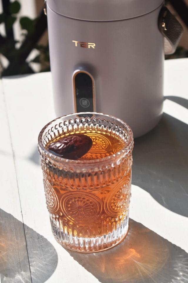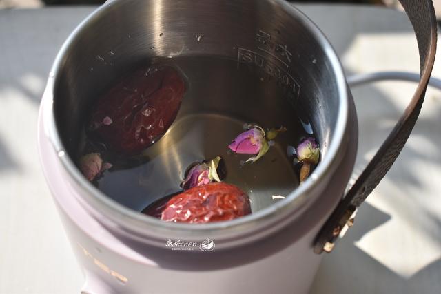 第二 红枣桂圆玫瑰花茶可以用养生壶、养生杯或者小煮锅制作,我比较喜欢用电煮锅,煮好以后自动进行保温,可以看显示屏看到煮锅里花茶的温度,还可以设置保温的温暖。