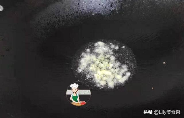 5、锅烧热,热锅凉油放入蒜蓉和姜炒出香味来。