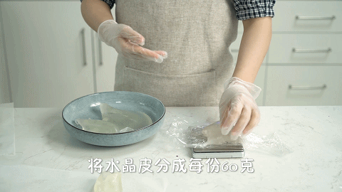 12、现在我们来包粽子:将水晶皮分成60克每份