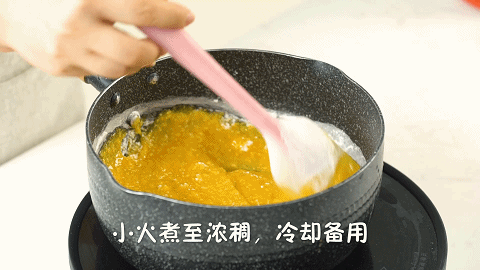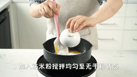 11、加入炒熟的粘米粉,拌匀至无粉颗粒,煮至浓稠后关火放凉备用