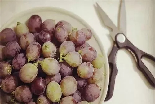 2、洗葡萄时如果想一粒一粒的洗,不要用手硬拔,最好用剪刀剪。因为拔下一个空洞,葡萄表皮的细菌就会污染到果肉,这些腐烂的果肉还会传染到别的颗粒,导致葡萄存放不了几天。剪刀可以先剪成小串,方便清洗,最好不嫌麻烦可以剪成一粒一粒的,剪的时候不要刺破果肉。