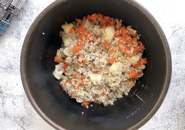 不管是熬咸粥还是焖煮咸饭,我都喜欢先将食材煸炒一下,这样熬出来的粥更加香浓好喝。