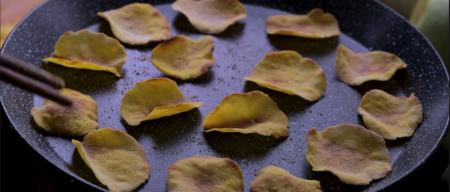 这个类似于薯片的东西,金黄酥脆,特别美味。最主要的是它的制作过程中,没有任何的添加,就连玉米是也是李子柒自己种的,没有农药和化肥残留,绿色健康。这样的美食现在在城里几乎是找不到的。