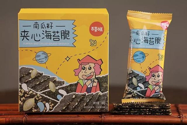 百草家的这款海苔,在口感上没啥可挑的,香、酥、脆这三样都很优秀,一入口就能把你征服,最让我门惊喜的是,夹心里的南瓜籽竟然是整颗的,对于爱吃瓜子的人来说简直不要太爽。