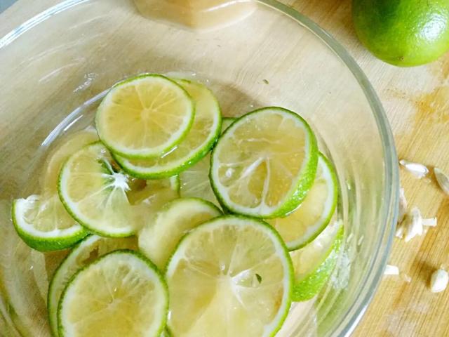 青柠,橙子洗净切成适当厚度的片备用,在壶中放入适量的茉莉与绿茶热水泡三分钟左右。