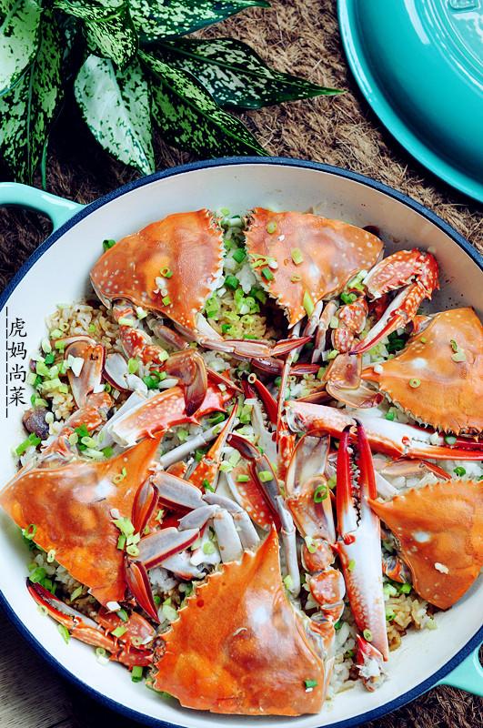 梭子蟹的汁,香肠的油,趁热先拌米饭,滋味浓郁又鲜香。
