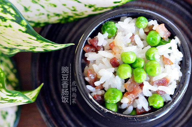 小贴士:不用放盐和任何的调味料,香肠的油脂和味道就够,再加上豌豆的软嫩鲜,非常好吃。