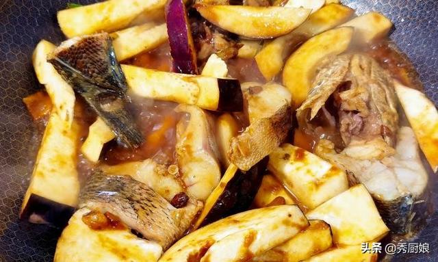 1.取一条黑鱼,将鱼鳞、鱼鳍、鱼鳃都去掉,用剪刀将鱼肚子剪开,将内脏去掉,清洗干净后,切成大块,茄子清洗干净后,也切成大块。