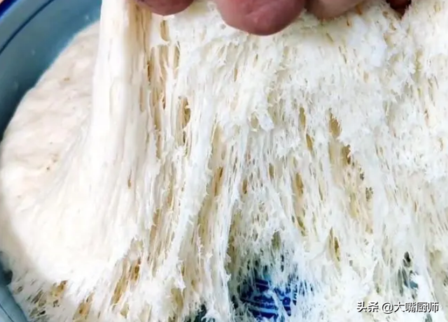 发酵好的面团,用手按压后不会回弹,用手扒开后会有很多气孔,闻不到任何酸味。