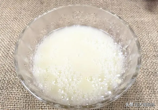 很多人直接把酵母加到面粉中,这是不对的,即使是没打开的酵母粉,也可能失效,所以先用温水化开,加点白糖等待一会儿。合适的温度下,酵母菌会分解白糖,产生二氧化碳,水里就会产生气泡,说明酵母菌有活性,并且开始大量繁殖了,就可以发面了。