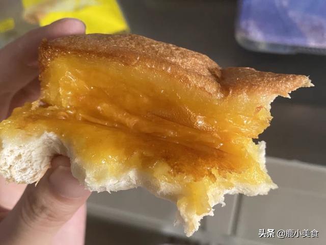②整体甜度不高,属于微甜而不腻的那种,撕开的横切面很像千层酥,看着面包纹理质感,就能体会到面包的蓬松软香。