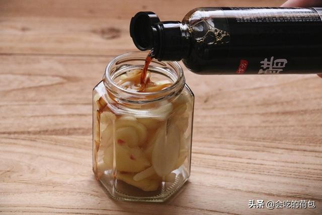 把姜片装入可以密封的罐子里,倒入醋没过姜,拧紧盖子后冷藏保存。醋和生姜是好搭档,这里我就来说说醋的使用。吃用醋腌过的生姜不容易上火,醋还能让生姜的营养得到充分地释放,但不是什么醋都可以哟!做醋腌仔姜要用纯粮食酿造的醋,勾兑醋不行!配料中有“醋酸”二字的都是勾兑醋,自然发酵的醋原料只能有粮食、麸皮、豆类、糖和盐。醋腌制仔姜多久才能吃?